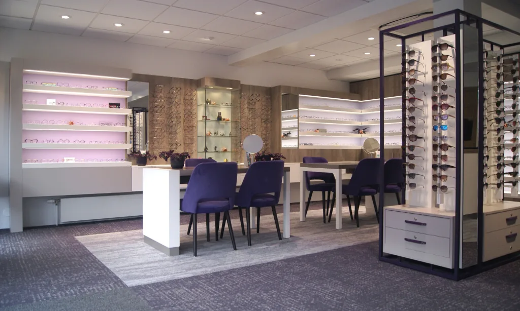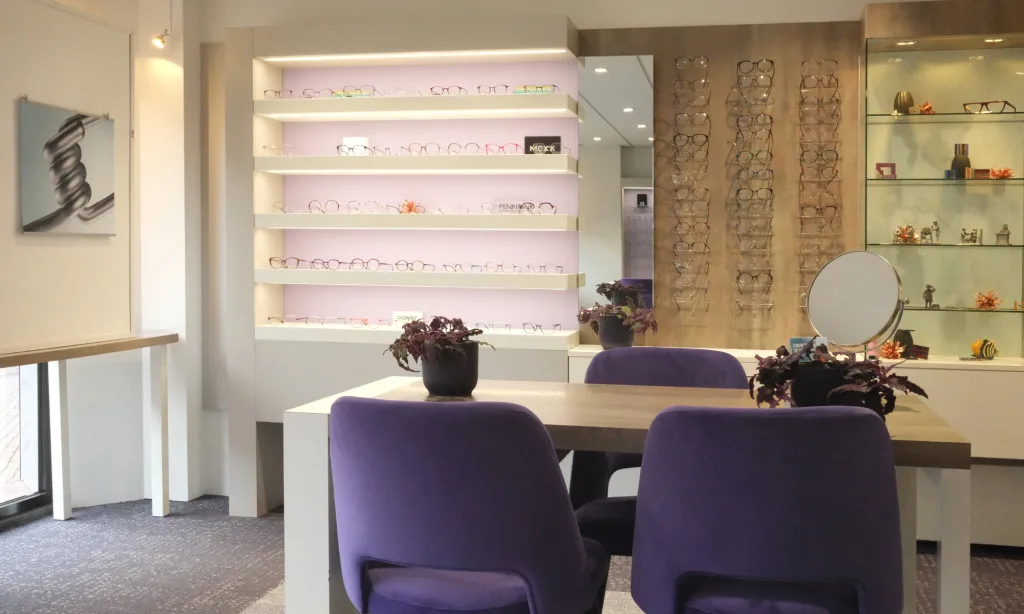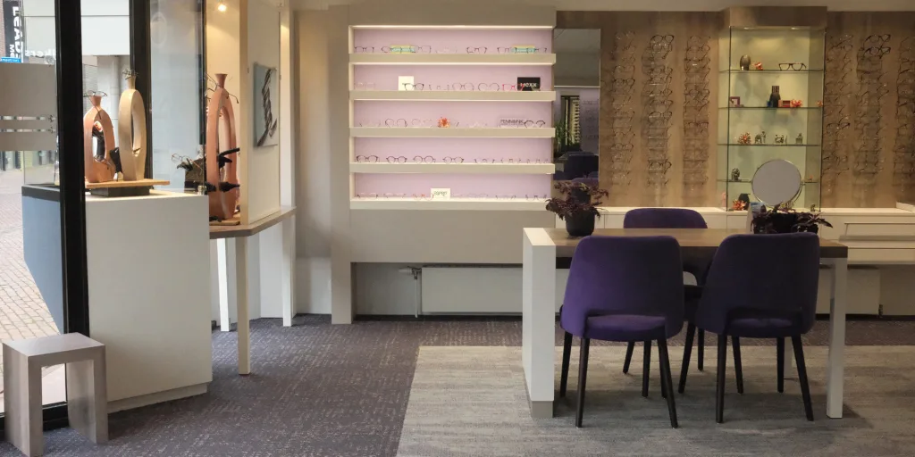 Für Westerhof Optiek in Beilen durften wir zur Neugestaltung des Geschäfts beitragen, wobei die Farbe Lila auf subtile Weise in das Konzept integriert wurde. Das Optikgeschäft wurde mit einem neuen Boden, einer neuen Decke und moderner Beleuchtung ausgestattet und durch maßgefertigte Möbel ergänzt. Gemeinsam sorgen diese Elemente für eine zeitgemäße Ausstrahlung mit einem warmen Charakter.